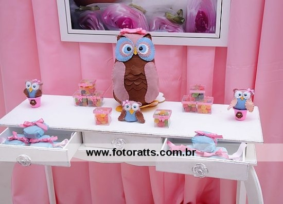 Decoração: Colossu Bolo Falso: Titia Nete Centro de Mesa: Titia Nete Corujinhas: Titia Nete Bisqui: Titia Bete Guloseimas: Titia Tata, tia Ana Paula, Titia Dani, Titia Regiane e Vovó Sueli Vestidos: Macys USA Faixas de Cabelo: Titia Tata e Titia Nete Sapatos: Gabrielinha e Fun Shoes Poster: Foto Ratts Fotos: Foto Ratts A Mamãe, o papai, e o irmão Gabriel Agradece a Presença de todos.