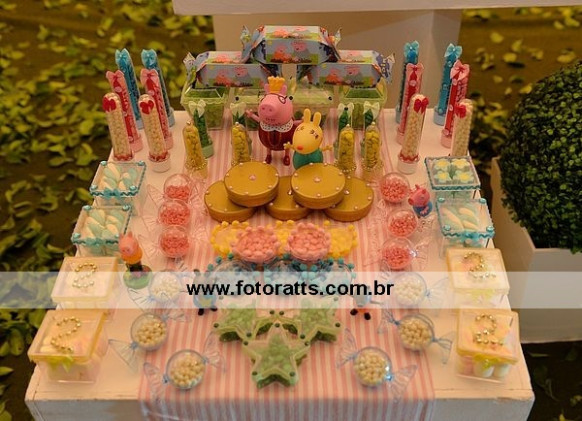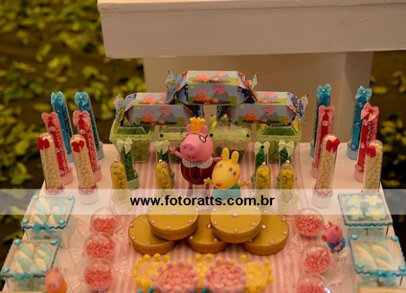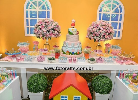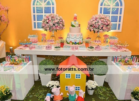 Local: Felici Buffet Projeto geral : Mamãe Déborah Execução: Mamãe Déborah Bolo cenográfico: Ateliê Carla Andreia Doces personalizados: Quindim doces Doces complementares: Raquel doces Casa da Peppa decorativa:Vovô Pê Lembrancinhas e Personalizados:Mamãe Déborah Chinelos personalizados: Chinelux( MG) Arranjos Florais: Caca prime Vestido Cecília: By Dilli Make Hair: Elder Sagatti Animação: Cartola Mágica Serviços de mesa: VM locadora