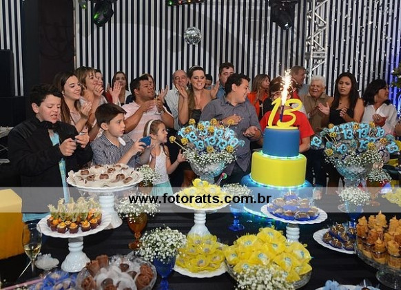 Recepção: Mercearia Kids Decoração Projeto e Direção Geral: Márcio Ballon Doces: ChocoLarte Bolo Artístico: Carla Andrea Lembranças: Armazem do Scrap - By Arthur Ceccarelli Convite Especial: Serata Buffet: Leila Malouf Centro de mesa: Márcio Ballon Porta Guardanapos: Fernando de Camargo DJ: Kleber Barthender: Neo Drinks Iluminação: Carlos Painel Led: Só Led Boate: Carlos Foto: Foto Ratts - Rodrigo e Wanderson Ratts